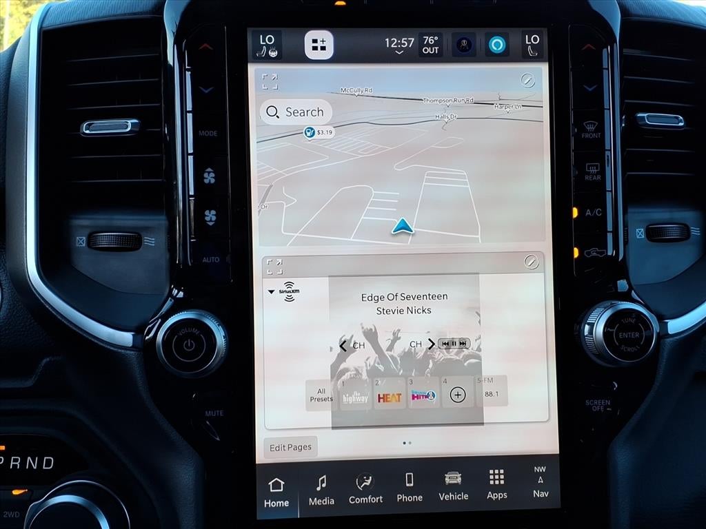 QUICK ORDER PACKAGE 21Z BIG HORN -inc: Engine: 3.0L I6 Hurricane SO Twin Turbo ESS, Transmission: 8-Speed Automatic (8HP75) , TIRES: 275/55R20 OWL ALL SEASON -inc: Bridgestone Brand Tires, REAR WHEELHOUSE LINERS, REAR UNDERSEAT COMPARTMENT STORAGE, RADIO: UCONNECT 5 NAV W/12.0 DISPLAY, NIGHT EDITION -inc: Tires: 275/55R20 OWL All Season, Bridgestone Brand Tires, Accent Color Premium Power Mirrors, Exterior Mirrors w/Supplemental Signals, Black Headlamp Bezels, Exterior Mirrors Courtesy Lamps, Grille Black Surround Black Mesh, Auto Power-Folding Mirrors, Wheels: 20 x 9.0 Aluminum Painted Clad, Auto Dim Exterior Driver Mirror, Black Exterior Truck Badging, Anti-Spin Differential Rear Axle, Accent Color Door Handles, Accent Color Tailgate Handle, Black Interior Accents, Dual Exhaust w/Black Tips, Body Color Front Bumper, Body Color Rear Bumper w/Step Pads, Black Tail Lamp Bezels, RAM Grille Badge - Black, Black Painted Exterior Mirrors Caps, MOPAR BLACK TUBULAR SIDE STEPS, GVWR: 7,100 LBS, GRANITE CRYSTAL METALLIC CLEARCOAT, FRONT LICENSE PLATE BRACKET.
